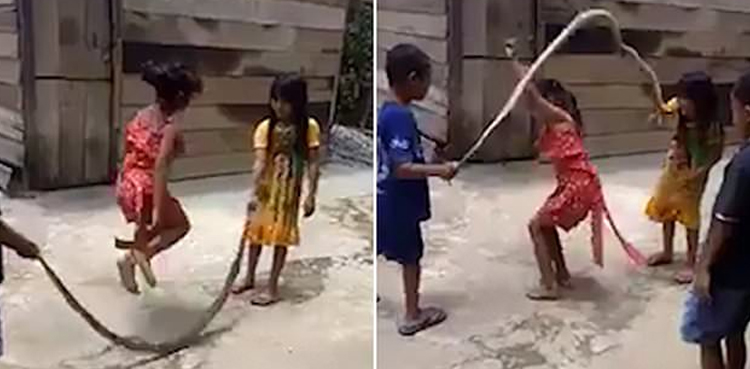 سوشل میڈیا پر وائرل ہونے والی ویڈیو ویتنام کے نواحی علاقے کی ہے جس میں دیکھا جاسکتا ہے کہ تین بچے بلا خوف و خطرے مردار اژدھے کے ساتھ رسی کودنے والا کھیل کھیل رہے ہیں۔