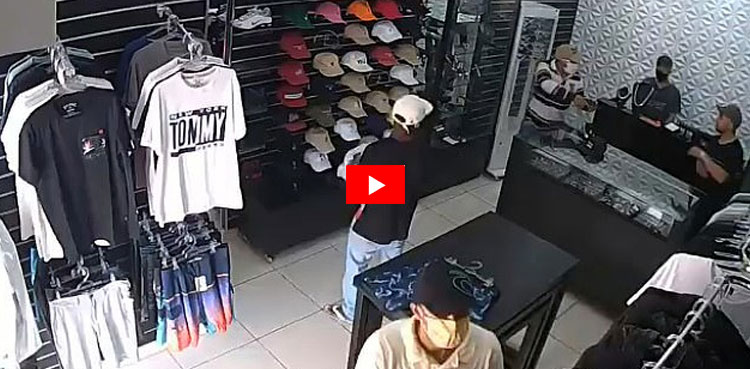 رپورٹ کے مطابق تین ڈاکو خریدار بن کر کپڑے کی دکان میں داخل ہوئے اور پینٹ شرٹ کی قیمتیں معلمول کرنے کے بعد موقع دیکھ کر ایک ڈاکو نے اسلحہ نکال لیا اور اسٹور مالک سے رقم دینے کا مطالبہ کیا۔