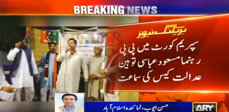 تفصیلات کے مطابق سپریم کورٹ میں پی پی رہنما مسعود عباسی کے توہین عدالت کیس کی سماعت ہوئی، عدالت نے مسعود الرحمان عباسی کو شوکاز نوٹس جاری کردیا۔