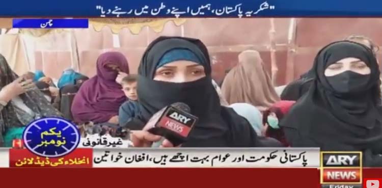 اے آر وائی نیوز کے مطابق کراچی کے علاقے ناظم آباد سے باب دوستی چمن کے راستے واپس افغانستان جانے والی خواتین کا کہنا ہے کہ ہم پاکستان سے بہت خوش ہیں بیس سال کراچی میں رہے۔