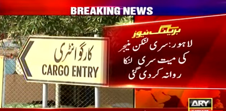 تفصیلات کے مطابق سانحہ سیالکوٹ کے مقتول فیکٹری منیجر پریانتھا کمارا کا جسد خاكى سرى لنكا روانہ کردیا گیا ، علامہ طاہر اشرفی،اعجاز عالم اگسٹن سری لنکا کے اعزازی قونصلر اور وزارت خارجہ کے عملے نے میت کو رخصت کیا، پرواز پنتالیس منٹ کی تاخیر کے بعد روانہ ہوئی۔