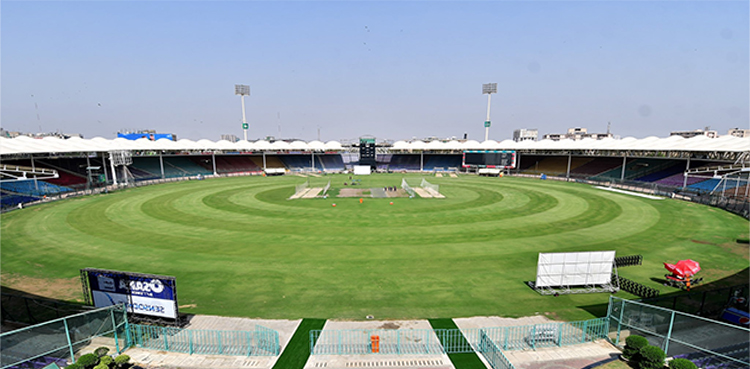 پاکستان اور آسٹریلیا کے درمیان دوسرے ٹیسٹ سے قبل پریکٹس سیشن کے بعد نیشنل اسٹیڈیم کراچی کی وکٹ پر موجود گھاس کم کر دی گئی۔