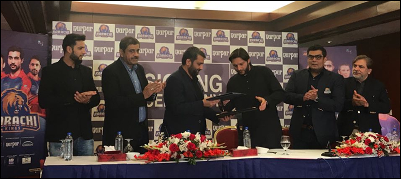 اسپانسر شپ معاہدے پر کراچی کنگز کے صدر شاہد آفریدی اور فوجی فوڈزلمیٹڈ کے سی او او عامر خواص نے دستخط کئے، اس موقع پر کراچی کنگز کے مالک سلمان اقبال بھی موجود تھے.