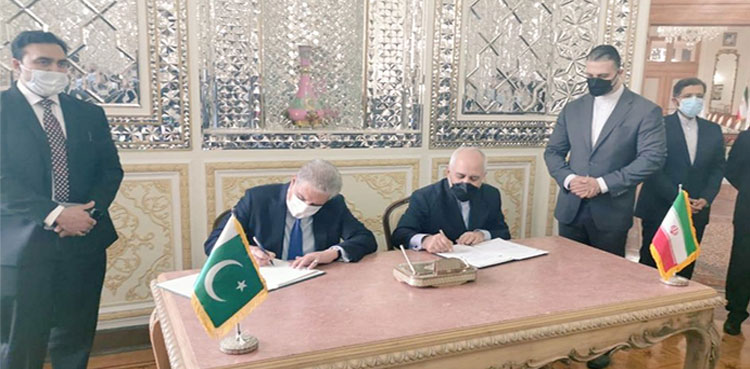 دورہ تہران پر موجود وزیرخارجہ شاہ محمود قریشی نے ایرانی ہم منصب جواد ظریف کے ہمراہ یادداشتوں پر دستخط کیے۔