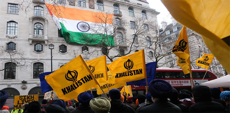 مظاہرین نے مودی سرکار کے خلاف احتجاج کرتے ہوئے کہا کہ بھارت سکھوں کو خوفزدہ کرنےکیلئے رہنماؤں کو راستے سے ہٹانا چاہتا ہے بھارتی ہتھکنڈے سکھوں کو خالصتان کی آزادی سے باز نہیں رکھ سکتے۔