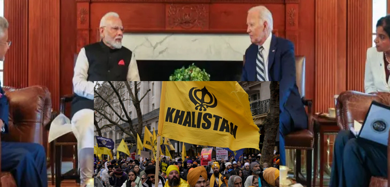 بائیڈن مودی ملاقات کے دوران سکھ مظاہرین نے خالصتان کے قیام کے لیے نعرے بھی لگائے۔