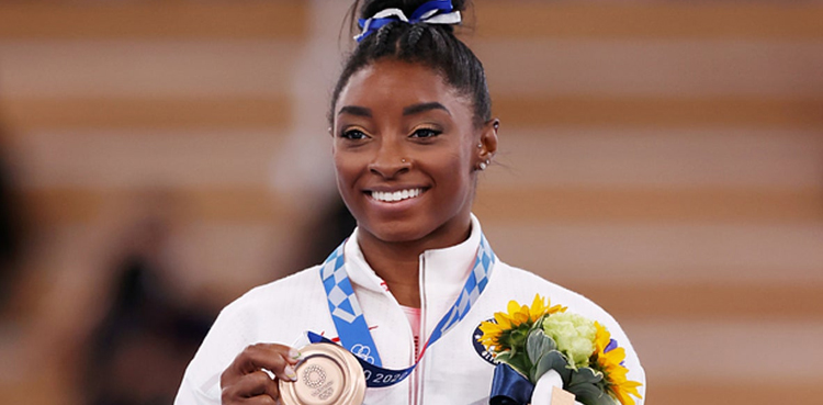 ٹوکیو اولمپکس میں جاری کھیلوں کے مقابلوں میں حصہ لینے والی امریکا کی سیمون بائلز نے جمناسٹک میں کانسی کا تمغہ جیت لیا ہے۔