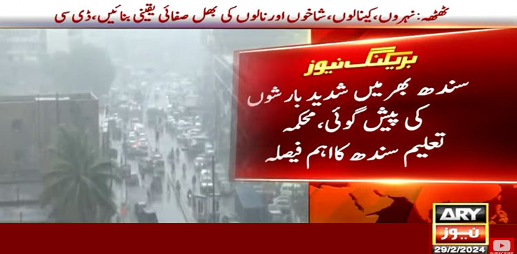 کراچی: سندھ بھر میں شدید بارشوں کی پیش گوئی کے پیش نظر محکمہ تعلیم سندھ نے اہم فیصلہ کرلیا۔
