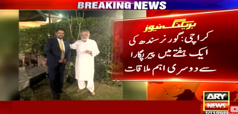 اے آر وائی نیوز کے مطابق گورنر سندھ کامران ٹیسوری رات گئے پیر پگارا سے ملنے ان کی رہائشگاہ پہنچ گئے جہاں دونوں رہنماؤں کے درمیان ملک کی موجودہ سیاسی صورتحال پر گفتگو ہوئی اور پاک فوج کے خلاف ہرزہ سرائی کی بھرپور مخالفت کی گئی۔