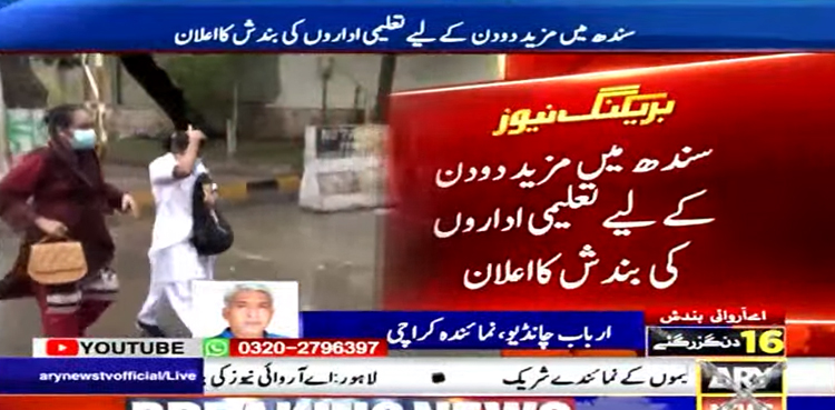 کراچی: سندھ حکومت نے تعلیمی ادارے مزید دو دن بند رکھنے کا اعلان کردیا ہے۔