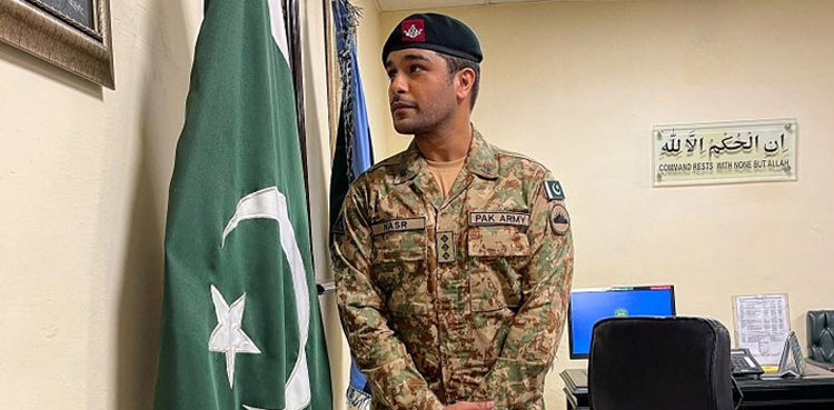 معروف گلوکار عاصم اظہر نے سماجی رابطے کی ویب سائٹ ٹویٹر پر وردی میں ملبوس اپنی تصویر شیئر کی اور لکھا کہ ’کیپٹن نصر ڈیوٹی پر رپورٹ کررہے ہیں۔‘