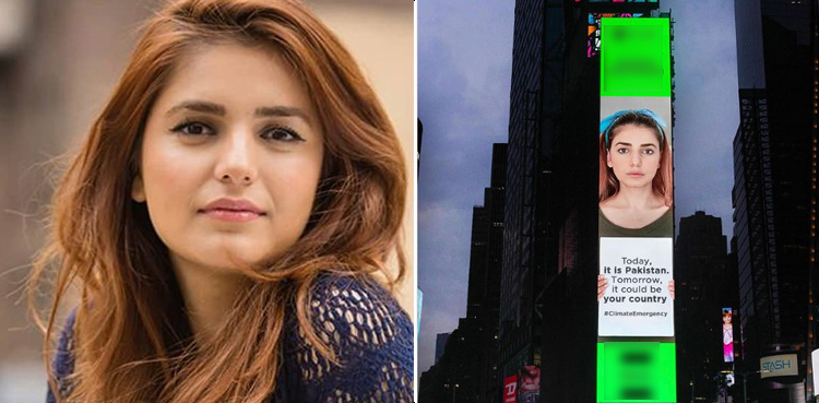 معروف گلوکارہ مومنہ مستحسن کا موسمیاتی تبدیلی سے متعلق پیغام ٹائمز اسکوائر نیویارک میں پیش کیا گیا۔
