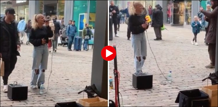سوشل میڈیا پر ایسی ہی ایک ویڈیو وائرل ہورہی ہے جس میں دیکھا جاسکتا ہے کہ لیو ہارلینڈ نامی خاتون گلوکارہ سڑک پر گانا گنگنا رہی ہیں اور ان کے قریب رقم جمع کرنے کے لیے ایک باکس بھی موجود ہے۔