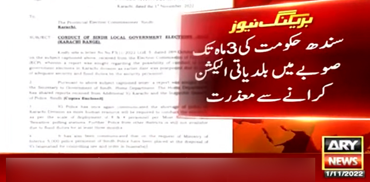 یاد رہے کہ 29 اکتوبر کو الیکشن کمیشن نے کراچی کے 7 اضلاع میں بلدیاتی انتخابات کروانے کے لیے سندھ حکومت کو خط لکھ کر جواب مانگا تھا۔