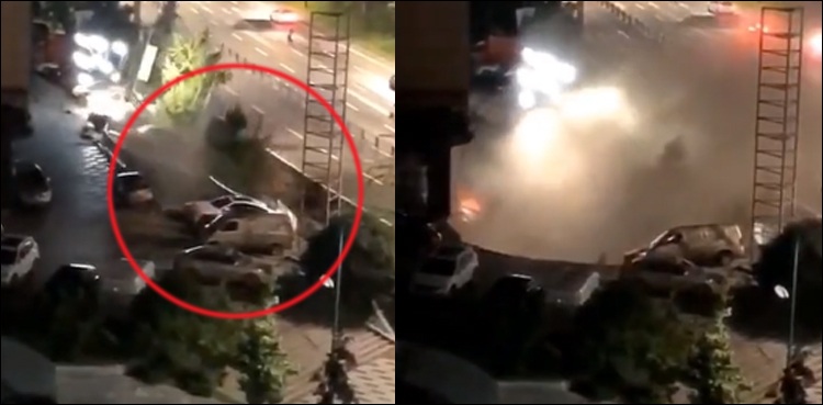 سی سی ٹی وی فوٹیج میں دیکھا جاسکتا ہے کہ پارکنگ ایریا میں گاڑیاں کھڑی ہیں اچانک گہرا گڑھا نمودار ہوا اور 21 گاڑیوں کو نگل گیا۔