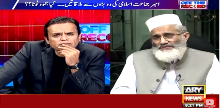 اے آر وائی نیوز کے پروگرام آف دی ریکارڈ میں گفتگو کرتے ہوئے سراج الحق نے کہا کہ 90 دن تو ویسے ہی گزر گئے ہیں اب آنے والے دنوں کو دیکھنا ہے حکومت اگر کہتی ہے الیکشن نہیں کرائیں گے تو یہ انتہائی غلط بات ہے ہم بھی اسٹیک ہولڈرہیں الیکشن میں حصہ لینا چاہتے ہیں۔