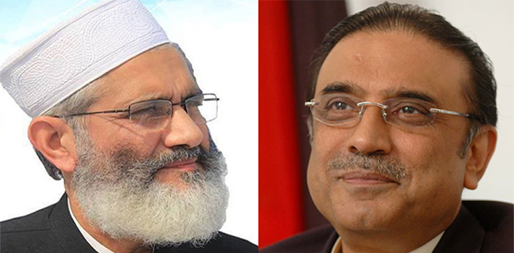 امیر جماعت اسلامی پاکستان سراج الحق نے کہا ہے کہ آصف زرداری نےکہا الیکشن تب ہو گا جب میں چاہوں گا آصف زرداری سےکہتاہوں الیکشن تب ہونگےجب عوام کہیں گے۔