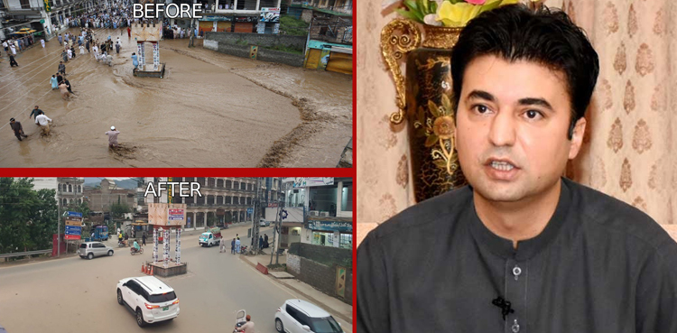 مراد سعید نے سیلاب سے متاثرہ سوات کے پہلے اور بعد کے مناظر سوشل میڈیا پر جاری کر دیے۔ پہلے مرحلے میں عالقے سے 2 ہزار سیاح اور مقامی آبادی کو محفوظ مقام پر منتقل کیا گیا۔