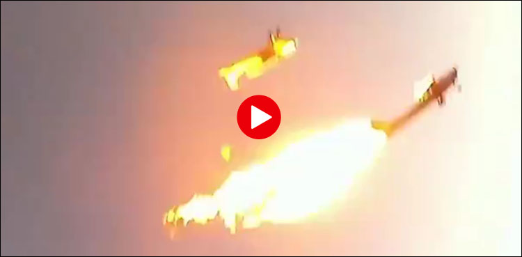 ویڈیو میں حادثے کے ان لمحات کو دکھایا گیا ہے جب اسٹنٹ کے دوران دو جہاز آپس میں ٹکرائے جس کے بعد جہاز میں سوار افراد اور پائلٹوں نے چھلانگ لگادی۔