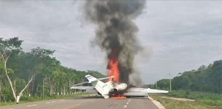 بین الاقوامی میڈیا رپورٹس کے مطابق یہ واقعہ یوکاتان پیننسولا میں پیش آیا جہاں اسمگلرز نے ہزاروں کلو ڈرگس سے بھرے پرائیویٹ طیارے کو ایمرجنسی لینڈ کرانے کے بعد اسے آگ لگا دی اور عملہ فرار ہونے میں کامیاب ہوگیا۔