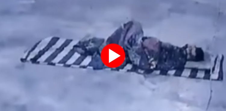 انٹرنیٹ پر وائرل مناظر میں دیکھا جاسکتا ہے کہ شہری سڑک کنارے کسی فٹ پاتھ پر گہری نیند میں سورہا ہے کہ اس دوران ایک سانپ رینگتے ہوئے آکر چادر میں جاگھسا۔