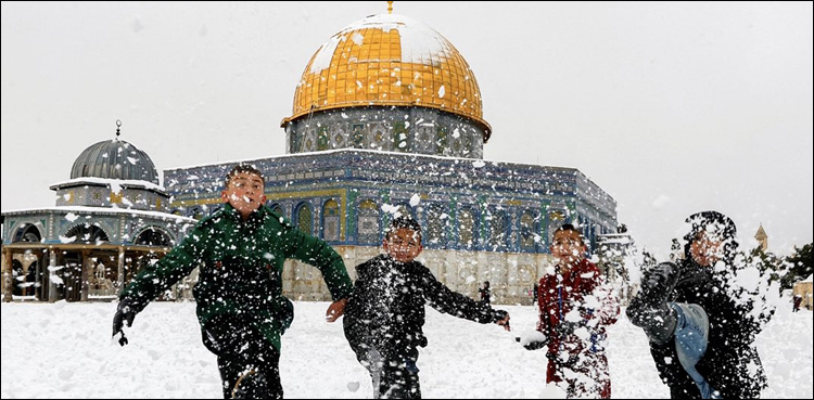 فلسطینی شہر مقبوضہ یروشلم میں تاریخ کی زبردست برف باری ہوئی ہے، جس نے مقدس شہر کے مشہور سنہری گنبد کو جمعرات کو برف سے ڈھک دیا ہے۔