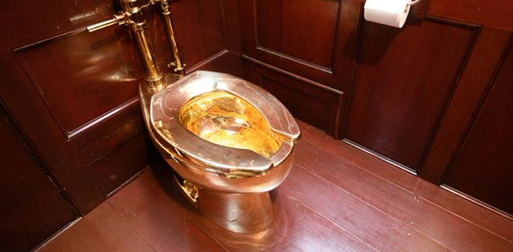 نیویارک: برطانیہ کے میوزیم سے چور خالص سونے سے بنا ٹوائلٹ لے اڑے، اٹھارہ قیراط سونے سے بنے اس انوکھےکموڈ کی قیمت پچاس لاکھ ڈالر ہے،جسے اطالوی آرٹسٹ نے بنایا تھا۔۔