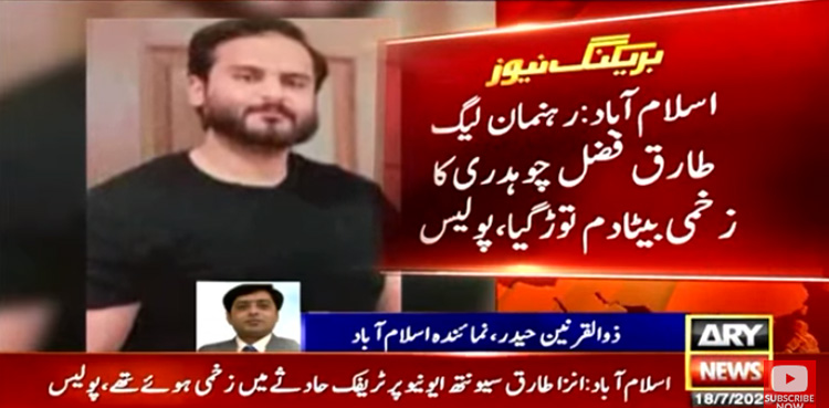 تفصیلات کے مطابق رہنما ن لیگ طارق فضل چوہدری کا جواں سالہ بیٹا انزا طارق روڈ ایکسڈنٹ میں شدید زخمی ہوگیا تھا جسے انتہائی تشویشناک حالت میں اسپتال منتقل کیا گیا۔