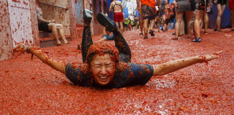 اسپین کے لوگ اپنی روایات کے مطابق ہر سال ٹماٹروں کا میلہ سجاتے ہیں جس میں ہزاروں افراد ایک دوسرے پر ٹماٹر پھیکنتے ہیں۔