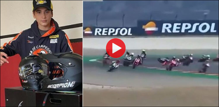 غیرملکی خبررساں ادارے کی رپورٹ کے مطابق اسپین میں جونیئر موٹر بائیک ریس کے دوران خوفناک حادثے میں 14 سالہ رائیڈرہوگو میلان زندگی کی بازی ہار گیا۔