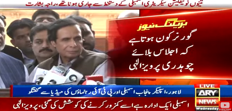 اسپیکر پنجاب اسمبلی چوہدری پرویز الہٰی نے ایوان اقبال میں بلائے گئے اجلاس کو غیر قانونی قرار دیتے ہوئے کہا ہے کہ گورنر کون ہوتا ہے کہ اجلاس بلائے۔