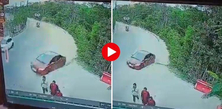 حادثہ اس وقت پیش آیا جب کار کا ڈرائیور تیز رفتار کے باعث توازن برقرار نہ رکھ سکا اور گاڑی چہل قدمی کرنے والے افراد سے ٹکرا گئی۔