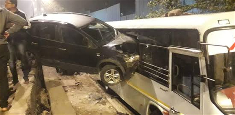 غیرملکی خبررساں ادارے کی رپورٹ کے مطابق بھارتی ریاست مہاراشٹر کے علاقے جوگیشوری ایکسپریس ہائی وےپر کار تیز رفتاری کے باعث بے قابو ہوکر بس میں جاگھسی جس کے نتیجے میں کار میں موجود 4 افراد زخمی ہوگئے۔