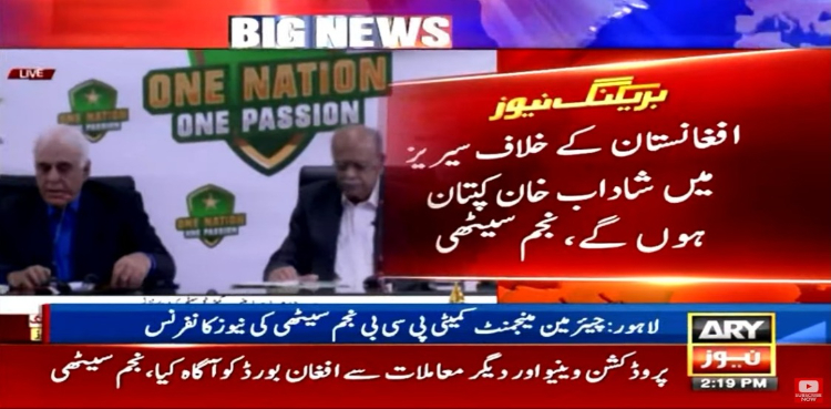 چیئرمین پی سی بی نے اعلان کیا ہےکہ پاک افغان ٹی ٹوئنٹی سیریز کے لیے شاداب خان کو کپتان بنانے کا فیصلہ کیا ہے۔