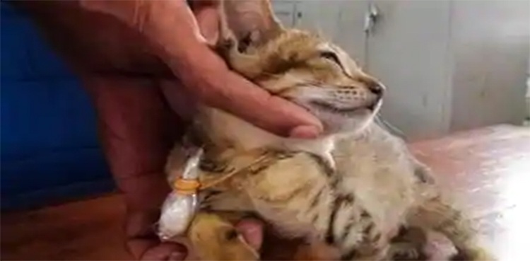 حکام کے مطابق بلی کی گردن کے گرد لپٹے پلاسٹک بیلٹ میں سے 2 گرام ہیروئن، دو سم کارڈ اور ایک میموری چپ ملی تھی۔