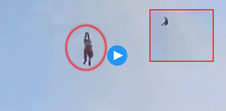 سوشل میڈیا پر وائرل ویڈیو میں دیکھا جاسکتا ہے کہ کس طرح شہری نے رسی تھامے آہستہ آہستہ بلندی سے نیچے آنے کی کوشش کی پھر موقع دیکھ کر چھلانگ لگا دی۔