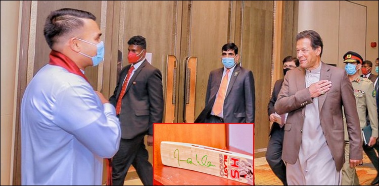 نمل راجا نے بیٹ دینے پر عمران خان کا شکریہ ادا کرتے ہوئے سری لنکا پاکستان زندہ باد کا نعرہ بھی لگایا۔