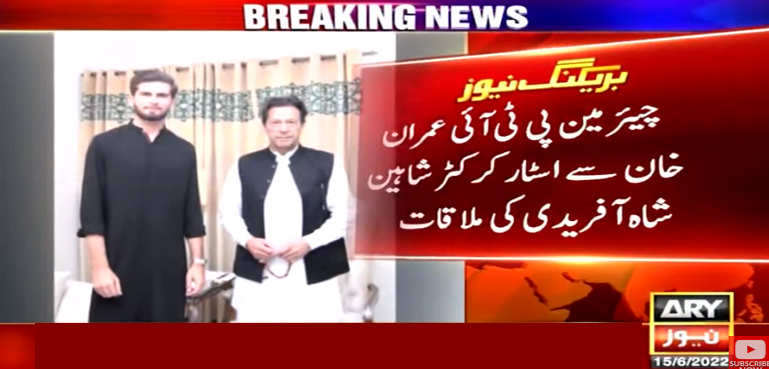 اے آر وائی نیوز کے مطابق پی ٹی آئی چیئرمین اور سابق وزیراعظم عمران خان سے پاکستان کے اسٹار کرکٹر شاہین شاہ آفریدی نے ملاقات کی ہے اس موقع پر وزیراعلیٰ خیبر پختونخوا محمود خان بھی موجود تھے۔