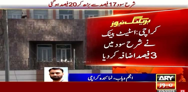 اے آر وائی نیوز کے مطابق اسٹیٹ بینک کی جانب سے مانیٹری پالیسی کے اعلان کے بعد شرح سود 17 فیصد سے بڑھ کر 20 فیصد ہوگئی ہے۔