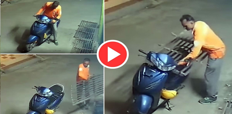 وہ شخص رات کے وقت ایک سنسان سڑک پر اپنی موٹر سائیکل روک کر ادھر ادھر دیکھتا ہے اور گٹر کے اوپر رکھا ہوا لوہے کا بڑا سا ڈھکن چرانے کیلئے اسے اٹھا کر موٹر سائیکل پر رکھ کر فرار ہوجاتا ہے۔