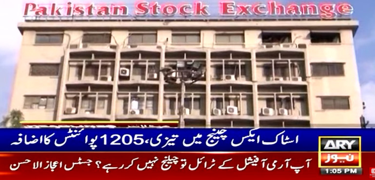 اے آر وائی نیوز کے مطابق پیر کو پاکستان اسٹاک ایکسچینج میں ہفتے کے پہلے ہی دن 1205 پوائنٹس کی تیزی ریکارڈ کی گئی جبکہ 100 انڈیکس 41 ہزار پوائنٹس کی حد کو عبور کرگیا، 100 انڈیکس 1205 پوائنٹس کے اضافے سے 41270 پوائنٹس پرٹریڈ کر رہا ہے۔