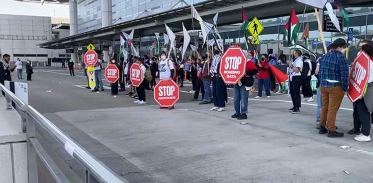الجزیرہ کے مطابق سیںکڑوں فلسطینی حامی مظاہرین نے سان فرانسسکو کے بین الاقوامی ہوائی اڈے کا کچھ حصہ بند کر دیا ہے تاکہ غزہ میں فوری جنگ بندی اور اسرائیل کو امریکی فوجی امداد بند کرنے کا مطالبہ کیا جا سکے۔