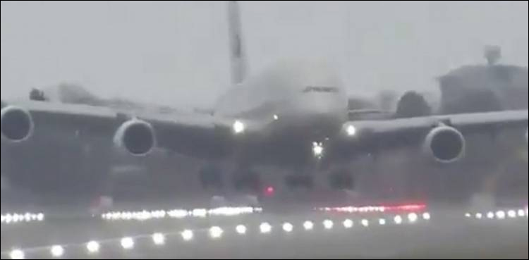 لندن: برطانوی دارالحکومت لندن کے ہیتھرو ایئرپورٹ پر طوفانی ہواؤں میں ہچکولے کھاتے مسافر طیارے کی لینڈنگ کی ویڈیو وائرل ہوگئی۔