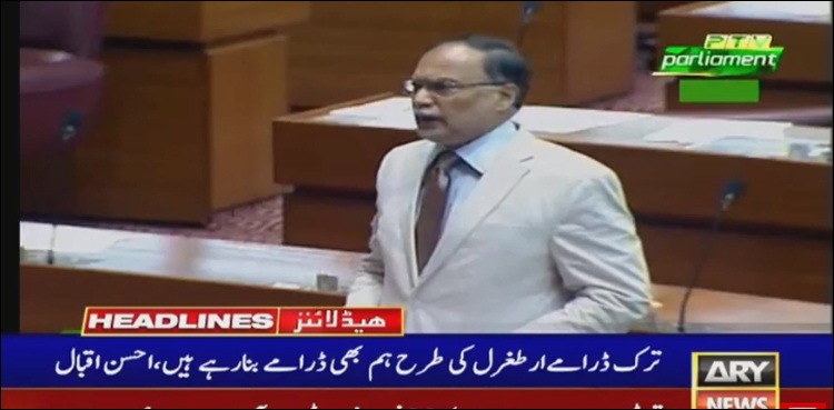 احسن اقبال نے اسمبلی کے فلور پر کہا کہ ہم نے بھی ڈراما بنایا ہے جس کا نام ہے معیشت رُل، اس سے ان کا مطلب تھا کہ حکومت نے معیشت کو تباہ کر کے رکھ دیا ہے۔ صرف یہی نہیں احسن اقبال نے ارطغرل کے نام کا مزید سہارا لیا اور کہا ہم نے مُلک رُل، خارجہ پالیسی رُل، سرمایہ کاری رُل، نوجوان رُل ، کسان رُل ڈرامے بھی بنائے ہیں۔