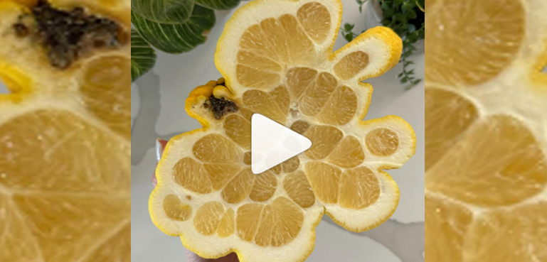 ویڈیو سے یہ تو ظاہر نہیں ہوتا کہ اس خاتون کا تعلق کس ملک سے ہے تاہم ویڈیو میں وہ ایک بڑے سائز کے مگر عجیب شکل کے لیموں کو کاٹ کر صارفین دکھاتی نظر آتی ہے۔