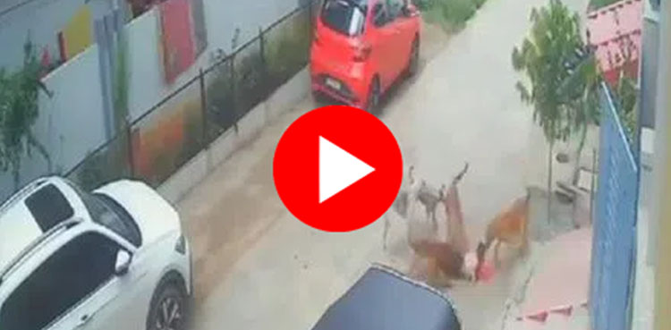 آوارہ کتوں کا خاتون پر حملہ، دل دہلا دینے والی ویڈیو وائرل