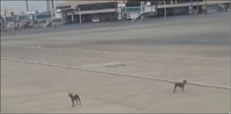 ایئرپورٹ ذرائع کا کہنا ہے کہ ایئرپورٹ کے رن وے کے قریب کتے اچانک کسی جانب سے نمودار ہوئے، آوارہ جانور کی وجہ سے ایئرپورٹ رن وے پر ٹیک آف اور لینڈنگ کرنے والے جہازوں کو حادثہ بھی پیش آسکتا تھا۔