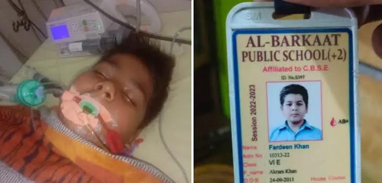 بھارتی میڈیا کے مطابق اترپردیش کے ضلع علی گڑھ کے انوپ شہر میں واقع البرکات اسکول میں گزشتہ ماہ کھیل کے وقفے کے دوران تشدد میں چھٹی جماعت میں زیر تعلیم 12 سالہ فردین خان شدید زخمی ہوگیا جس کو پہلے مقامی اسپتال لے جایا گیا جہاں حالت تشویشناک ہونے کے بعد اس کو دہلی کے ایمس اسپتال کی آئی سی میں منتقل کردیا گیا ہے جہاں اس کی حالت تشویشناک بتائی جاتی ہے۔