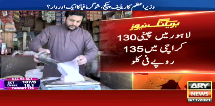 لاہور میں ہول سیل مارکیٹ میں چینی کے نرخ 120 سے 124 روپے جب کہ ریٹیل میں 130 روپے فی کلو فروخت ہورہی ہے جبکہ کراچی میں چینی کی فی کلو ریٹیل قیمت 135 روپے تک پہنچ گئی۔