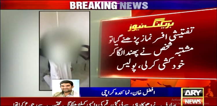 رپورٹ میں کہا گیا ہے کہ صبح کمرے میں متوفی کی پنکھے سے لٹکی ہوئی لاش ملی، جس پر ایس ایس پی انوسٹی گیشن ڈسٹرکٹ کیماڑی توحید رحمٰن میمن نے واقعے پر فوری ایکشن لیا اور غفلت اور لاپرواہی کا مظاہرہ کرنے والے افسران SIO تھانہ شیر شاہ، سب انسپکٹر ارشد تنولی اور تفتیشی افسر سب انسپکٹر سیدار خٹک کو حراست میں لے کر مقدمہ درج کر لیا گیا۔
